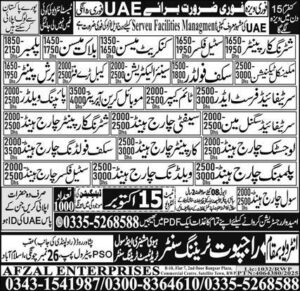 Tagged as: Afzal Enterprises Rawalpindi Jobs 2025, Logistic Chargehand and Cable Tray Fitter Jobs in Dubai 2025, Rajput Training Center Overseas Jobs 2025, Serveu Facilities Management UAE Jobs 2025, UAE Latest Jobs 2025 for Pakistanis